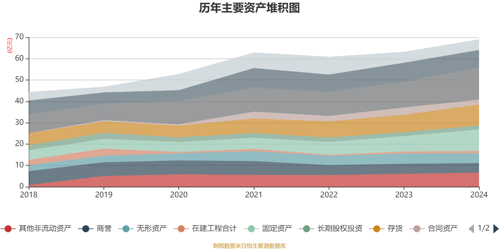 资产重大变化方面,截至2024年末,公司固定资产较上年末增加38.55%,占公司总资产比重上升3.08个百分点;应收票据及应收账款较上年末增加25.09%,占公司总资产比重上升2.77个百分点;货币资金较上年末减少8.31%,占公司总资产比重下降2.25个百分点;合同资产较上年末减少30.99%,占公司总资产比重下降1.97个百分点。