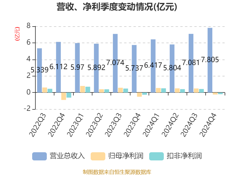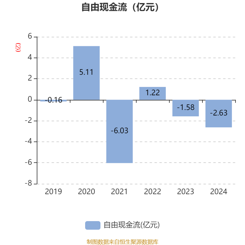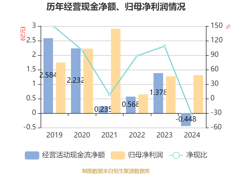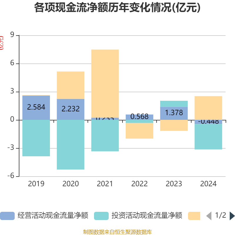 截至2024年,公司经营活动现金流净额为-4482.93万元,同比减少1.83亿元;筹资活动现金流净额2.52亿元,同比增加3.69亿元;投资活动现金流净额-2.7亿元,上年同期为6517.32万元。