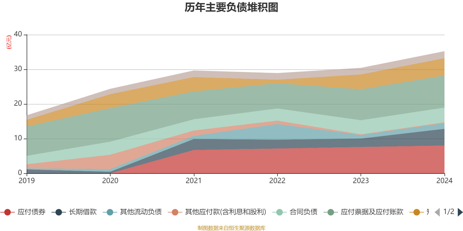 负债重大变化方面,截至2024年末,公司长期借款较上年末增加98.66%,占公司总资产比重上升3.13个百分点;其他流动负债较上年末增加58.69%,占公司总资产比重上升0.75个百分点;应付票据及应付账款较上年末增加3.84%,占公司总资产比重下降0.69个百分点;短期借款较上年末增加16.25%,占公司总资产比重上升0.44个百分点。