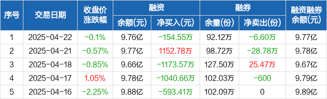 纳指ETF融资融券信息显示,2025年4月22日融资净偿还154.55万元;融资余额9.76亿元,较前一日下降0.16%。