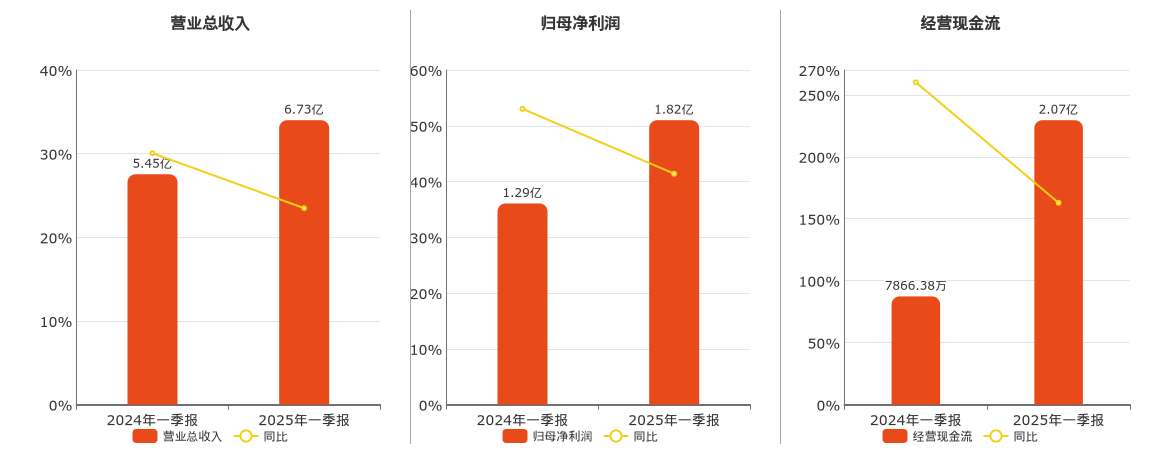 公司营业总收入为6.73亿元。归母净利润为1.82亿元。经营活动现金净流入为2.07亿元。