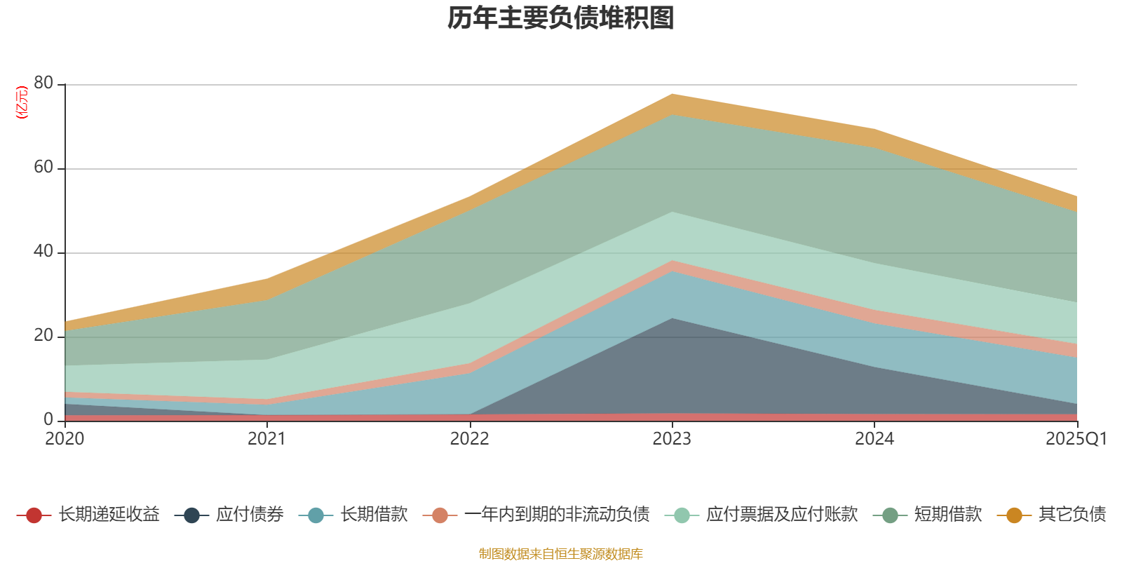 负债重大变化方面,截至2025年一季度末,公司应付债券较上年末减少78.04%,占公司总资产比重下降6.02个百分点;短期借款较上年末减少21.78%,占公司总资产比重下降3.44个百分点;长期借款较上年末增加6.42%,占公司总资产比重上升0.84个百分点;应付票据及应付账款较上年末减少11.6%,占公司总资产比重下降0.57个百分点。