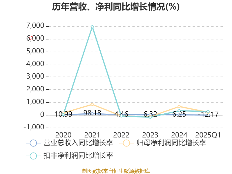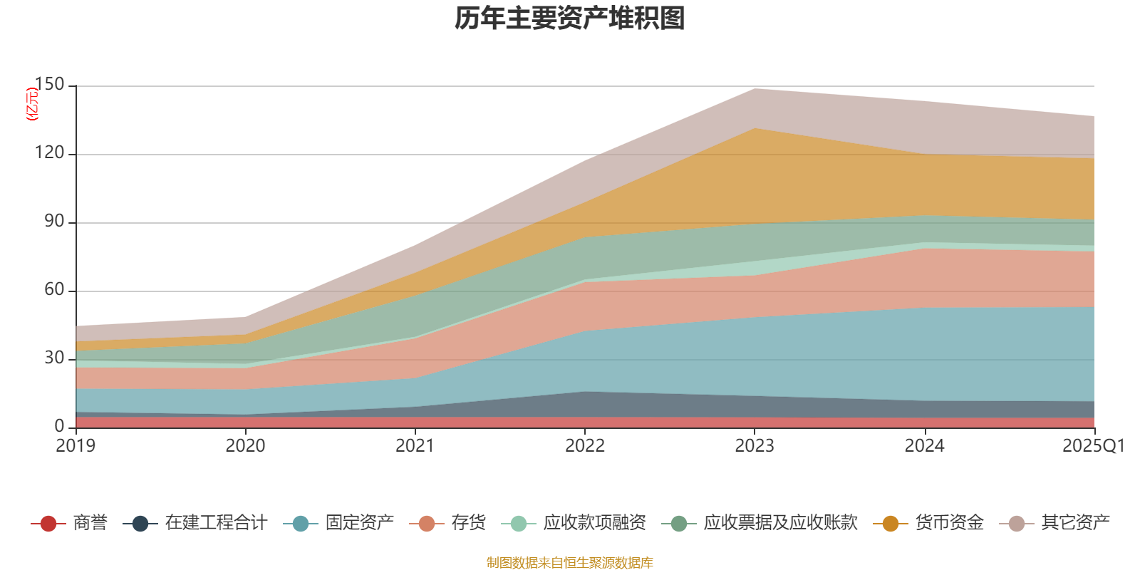 资产重大变化方面,截至2025年一季度末,公司交易性金融资产合计较上年末减少90.77%,占公司总资产比重下降4.1个百分点;固定资产较上年末增加1.18%,占公司总资产比重上升1.75个百分点;其他非流动资产较上年末增加338.16%,占公司总资产比重上升1.4个百分点;货币资金较上年末增加0.17%,占公司总资产比重上升0.95个百分点。