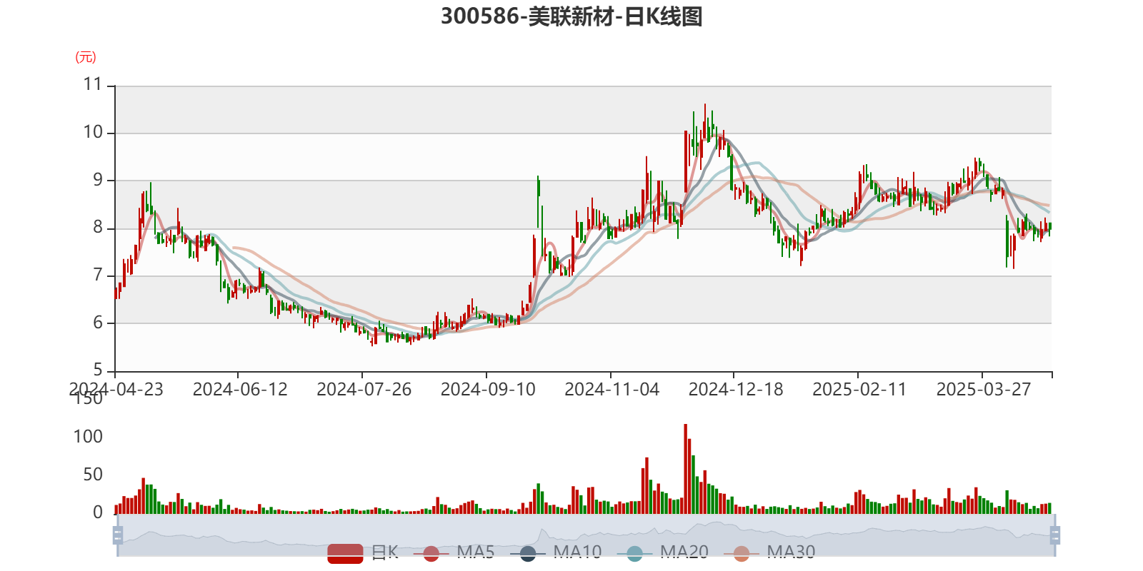 中证智能财讯美联新材(300586)4月23日披露2025年第一季度报告。公司实现营业总收入4.48亿元,同比增长6.54%;归母净利润940.14万元,同比下降64.54%;扣非净利润916.82万元,同比下降64.67%;经营活动产生的现金流量净额为-1458.62万元,上年同期为-2014.83万元;报告期内,美联新材基本每股收益为0.0132元,加权平均净资产收益率为0.49%。