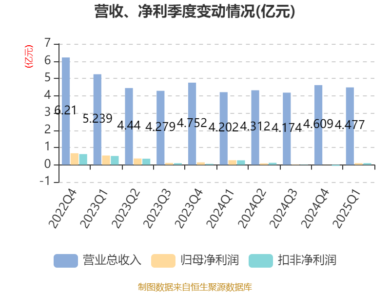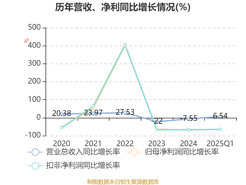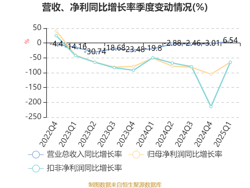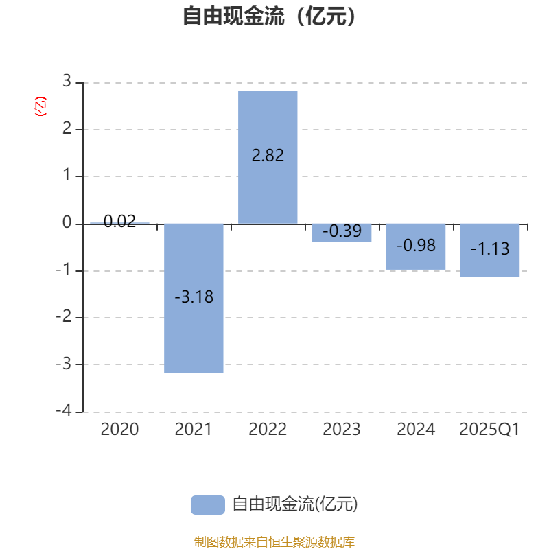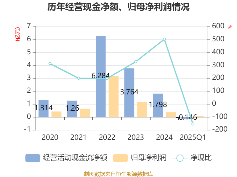 截至2025年一季度末,公司经营活动现金流净额为-1458.62万元,同比增加556.21万元;筹资活动现金流净额-606.4万元,同比减少9306.62万元;投资活动现金流净额-4659.46万元,上年同期为-1.26亿元。