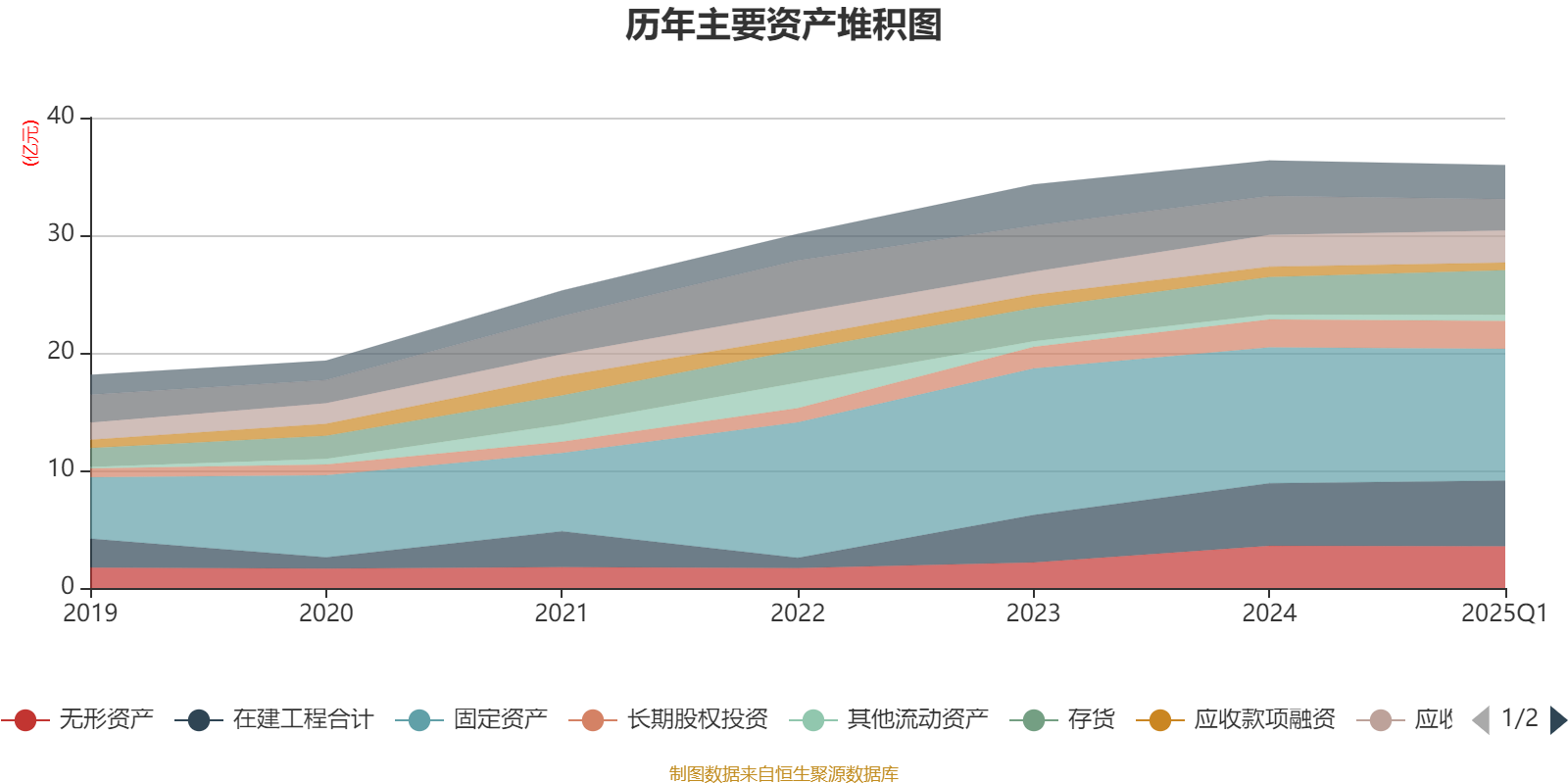 资产重大变化方面,截至2025年一季度末,公司存货较上年末增加18.96%,占公司总资产比重上升1.77个百分点;货币资金较上年末减少19.91%,占公司总资产比重下降1.74个百分点;在建工程合计较上年末增加4.92%,占公司总资产比重上升0.88个百分点;应收款项融资较上年末减少27.76%,占公司总资产比重下降0.65个百分点。