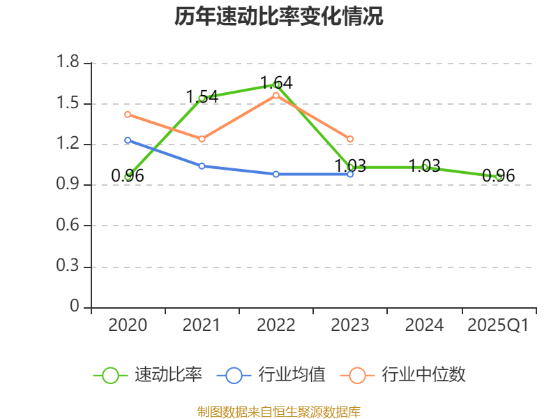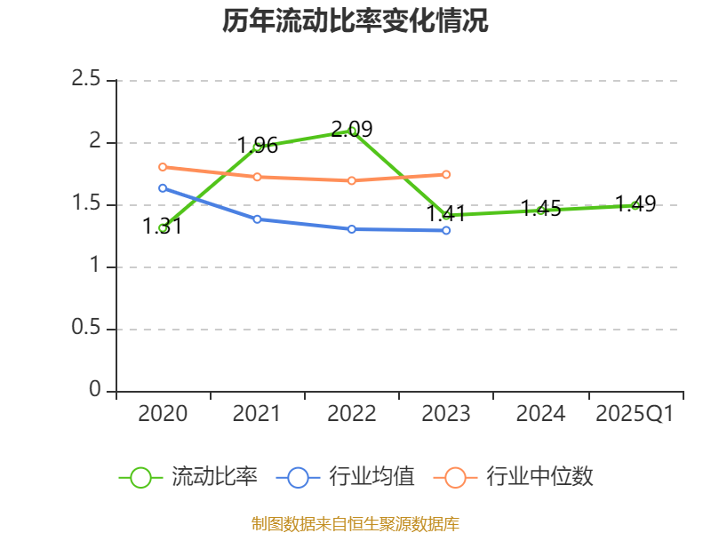 2025年第一季度,公司流动比率为1.49,速动比率为0.96。