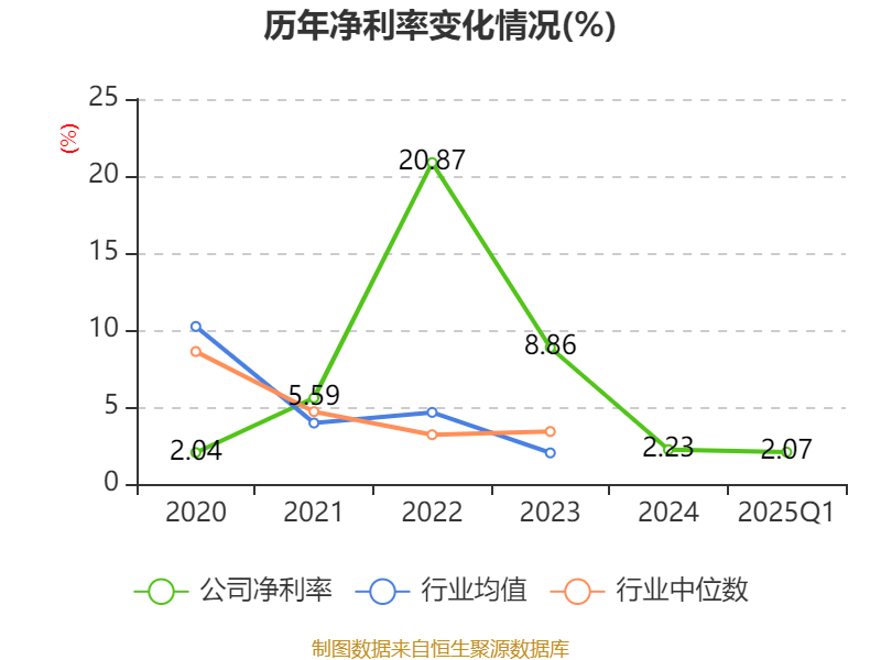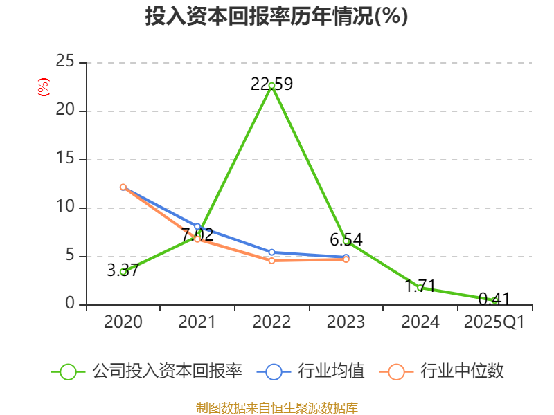 盈利能力方面, 2025年一季度公司加权平均净资产收益率为0.49%,同比下降0.88个百分点。公司2025年第一季度投入资本回报率为0.41%,较上年同期下降0.93个百分点。
