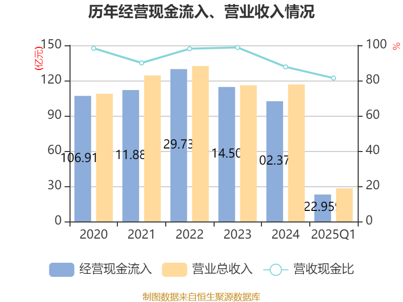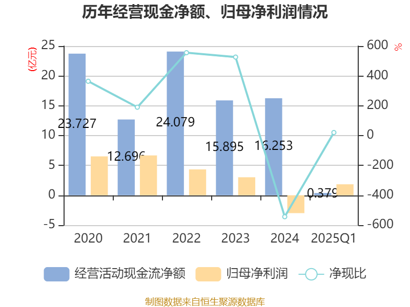 截至2025年一季度末,公司经营活动现金流净额为3785.04万元,同比下降66.06%;筹资活动现金流净额2.19亿元,同比减少5.12亿元;投资活动现金流净额1.19亿元,上年同期为-5.73亿元。