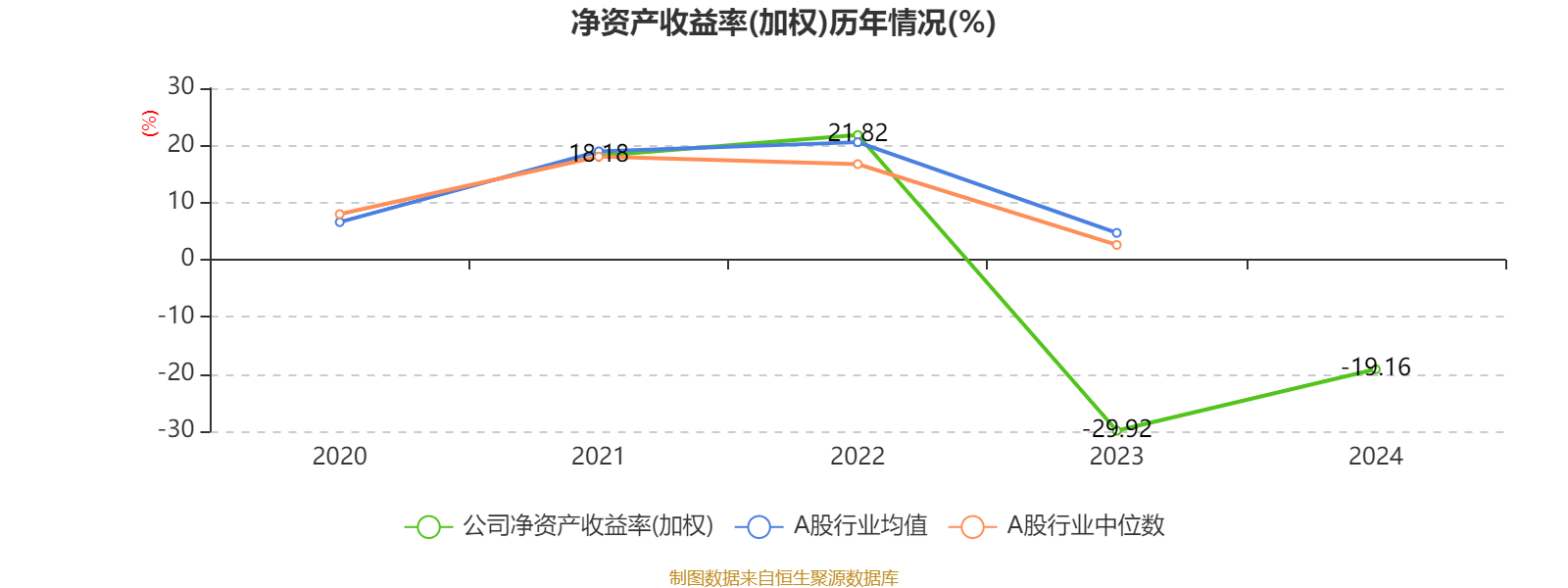 数据显示,2024年公司加权平均净资产收益率为-19.16%,较上年同期上升10.76个百分点。