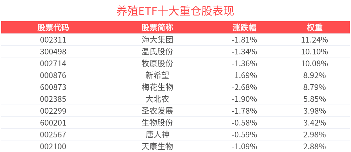 养殖ETF(516760)下跌1.57%。截至2025年4月22日,养殖ETF近1月累计上涨6.33%。