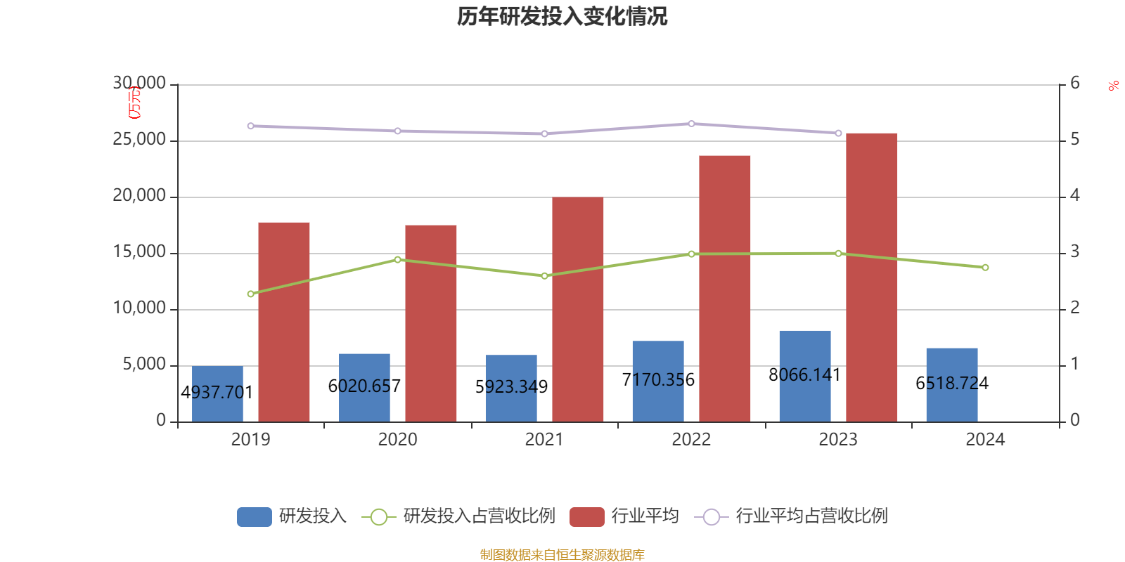 2024年全年,公司研发投入金额为6518.72万元,同比下降19.18%;研发投入占营业收入比例为2.74%,相比上年同期下降0.25个百分点。此外,公司全年研发投入资本化率为0%。