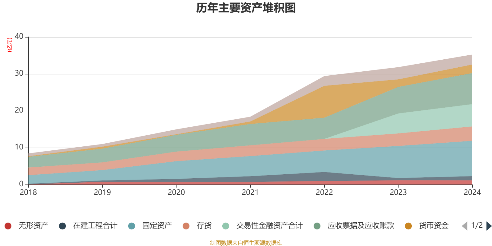 资产重大变化方面,截至2024年末,公司一年内到期的非流动资产较上年末减少100%,占公司总资产比重下降3.23个百分点;在建工程合计较上年末增加89.41%,占公司总资产比重上升1.32个百分点;应收票据及应收账款较上年末增加16.75%,占公司总资产比重上升1.23个百分点;应收款项融资较上年末增加65.64%,占公司总资产比重上升0.58个百分点。