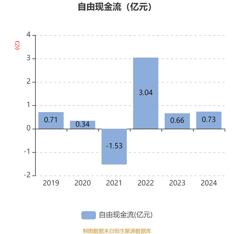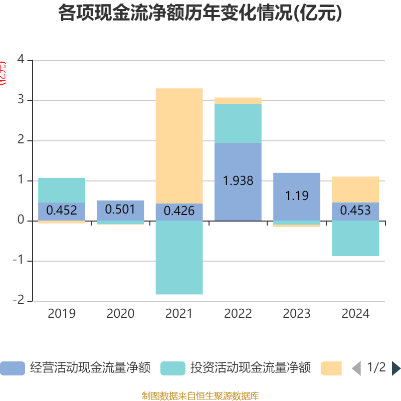 截至2024年,公司经营活动现金流净额为4534.92万元,同比下降61.89%;筹资活动现金流净额6427.42万元,同比增加6978.72万元;投资活动现金流净额-8867.61万元,上年同期为-1070.16万元。