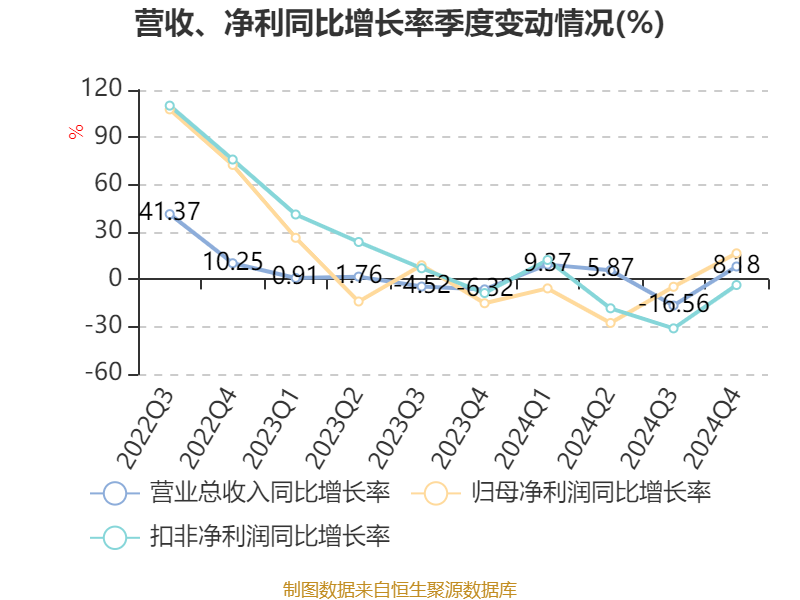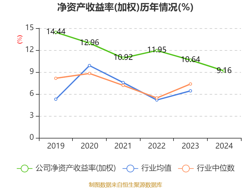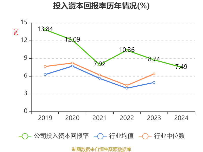 数据显示,2024年公司加权平均净资产收益率为9.16%,较上年同期下降1.48个百分点。公司2024年投入资本回报率为7.49%,较上年同期下降1.25个百分点。