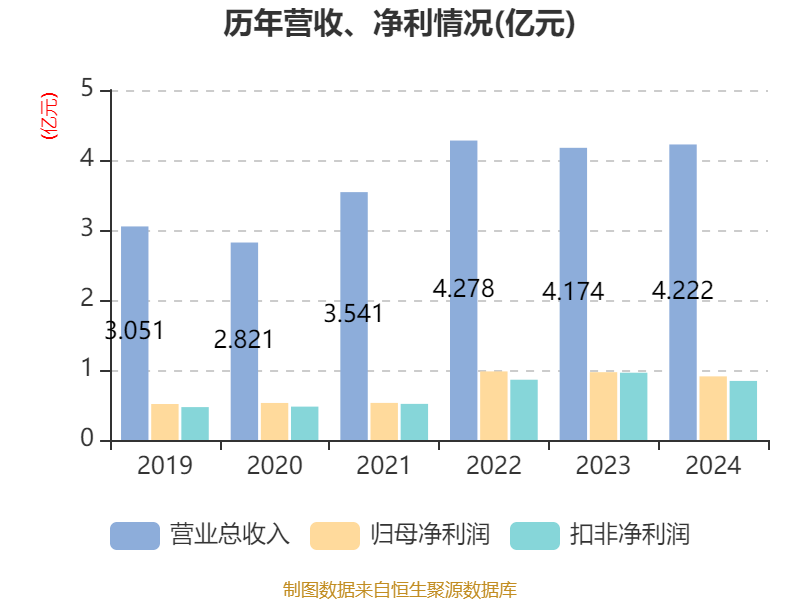 中证智能财讯正强股份(301119)4月23日披露2024年年度报告。2024年,公司实现营业总收入4.22亿元,同比增长1.16%;归母净利润9093.12万元,同比下降6.18%;扣非净利润8440.96万元,同比下降12.20%;经营活动产生的现金流量净额为4534.92万元,同比下降61.89%;报告期内,正强股份基本每股收益为0.87元,加权平均净资产收益率为9.16%。公司2024年度分配预案为:拟向全体股东每10股派现9.2元(含税)。