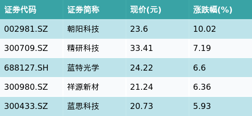 ETF最前线 | 嘉实中证稀土产业ETF(516150)早盘上涨0.97%,苹果概念主题走强,朝阳科技上涨10.02%