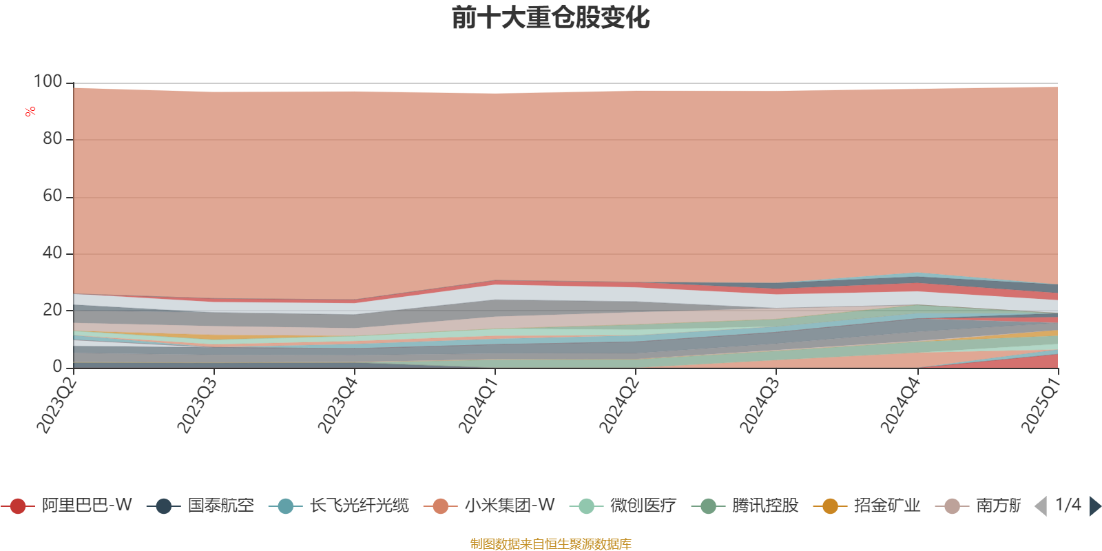 截至2025年一季度末,基金十大重仓股分别是阿里巴巴-W、紫金矿业、中国铝业、腾讯控股、中国南方航空股份、中国国航、药明生物、招金矿业、微创医疗、长飞光纤光缆。