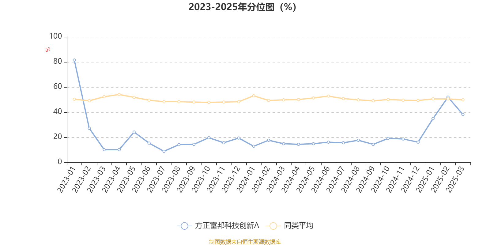 通过所选区间该基金净值增长率分位图,可以观察该基金与同类基金业绩比较情况。图为坐标原点到区间内某时点的净值增长率在同类基金中的分位数。