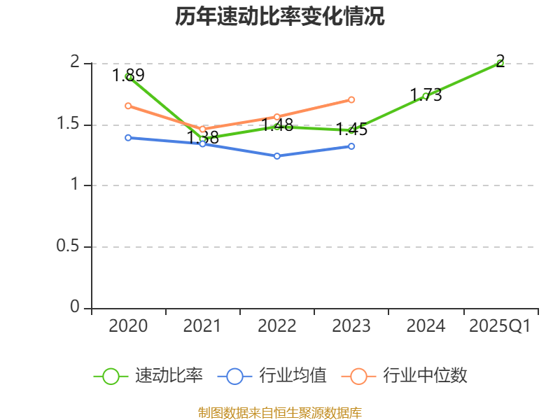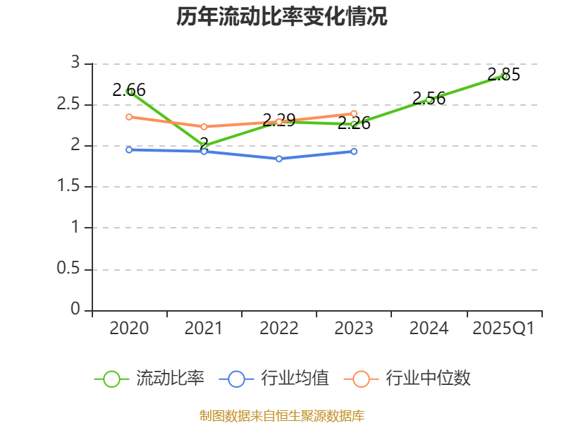 2025年第一季度,公司流动比率为2.85,速动比率为2。