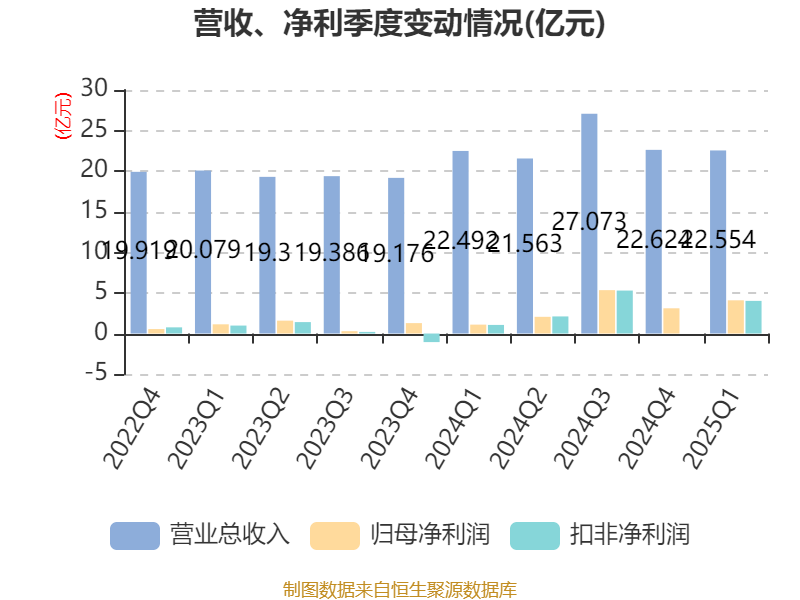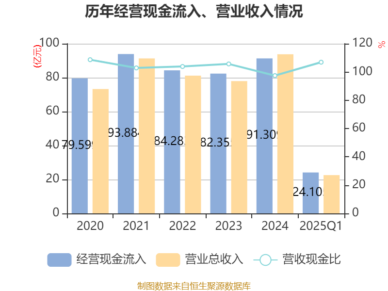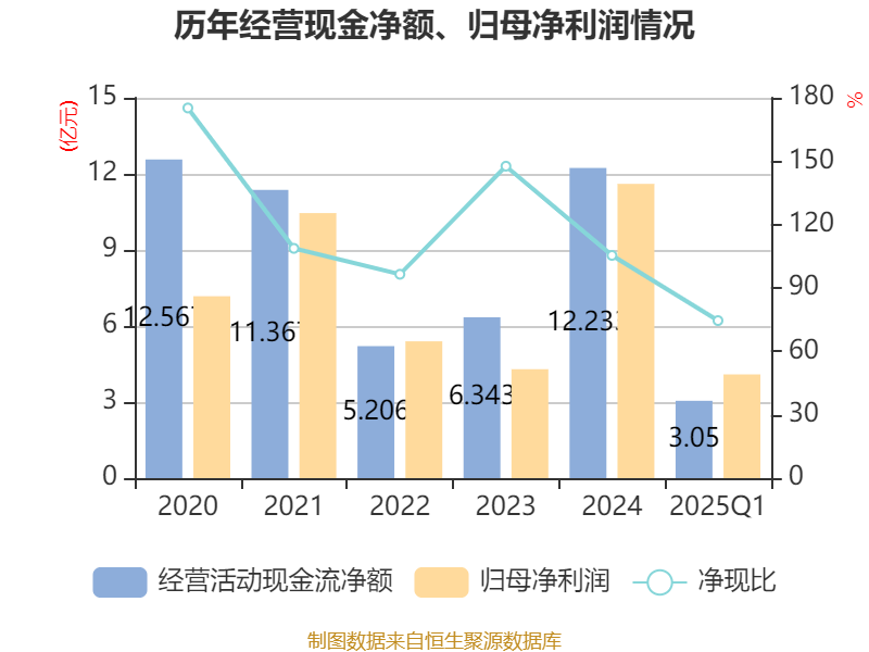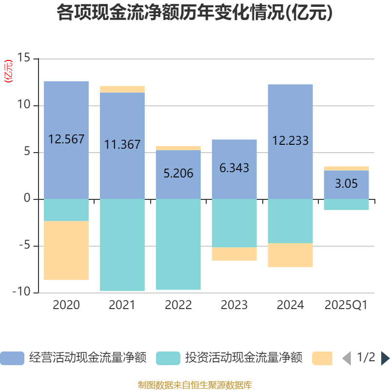 截至2025年一季度末,公司经营活动现金流净额为3.05亿元,同比增长1216.17%;筹资活动现金流净额4222.88万元,同比减少104.77万元;投资活动现金流净额-1.18亿元,上年同期为5777.58万元。