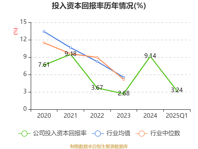 盈利能力方面, 2025年一季度公司加权平均净资产收益率为3.77%,同比上升2.64个百分点。公司2025年第一季度投入资本回报率为3.24%,较上年同期上升2.49个百分点。