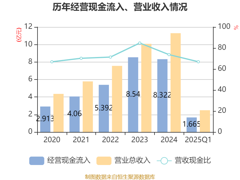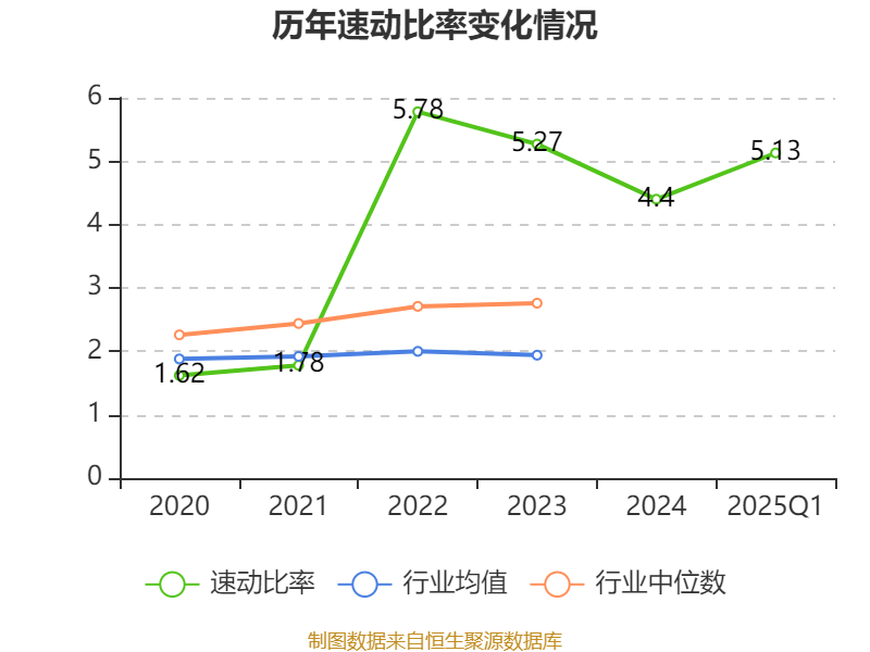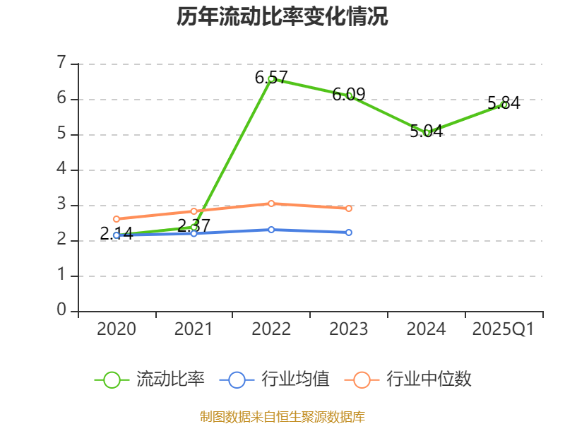 2025年第一季度,公司流动比率为5.84,速动比率为5.13。