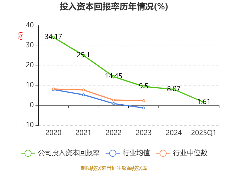 盈利能力方面, 2025年一季度公司加权平均净资产收益率为1.75%,同比上升0.15个百分点。公司2025年第一季度投入资本回报率为1.61%,较上年同期上升0.16个百分点。
