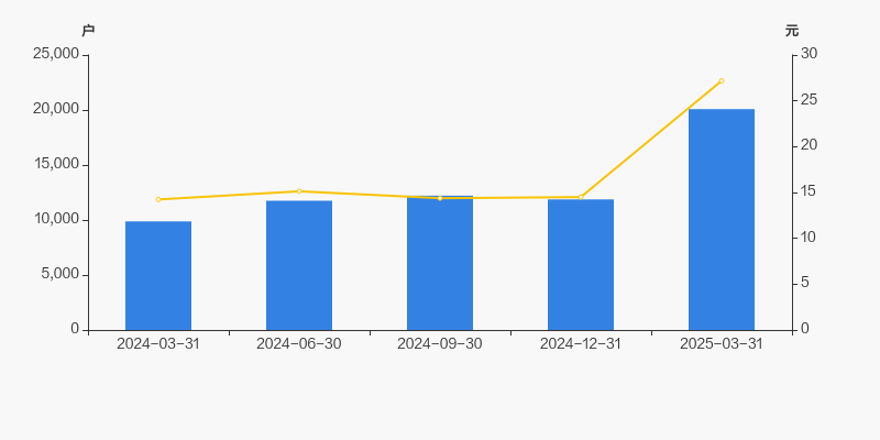 2024年3月31日至今,公司股东户数成倍增长,区间涨幅达103.39%。2024年3月31日至2025年3月31日区间股价上涨90.81%。