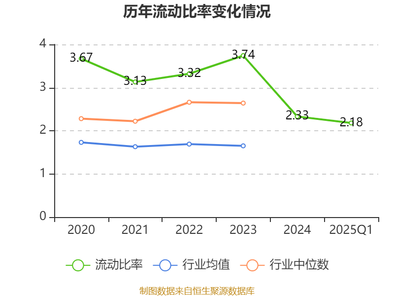 2025年第一季度,公司流动比率为2.18,速动比率为1.82。