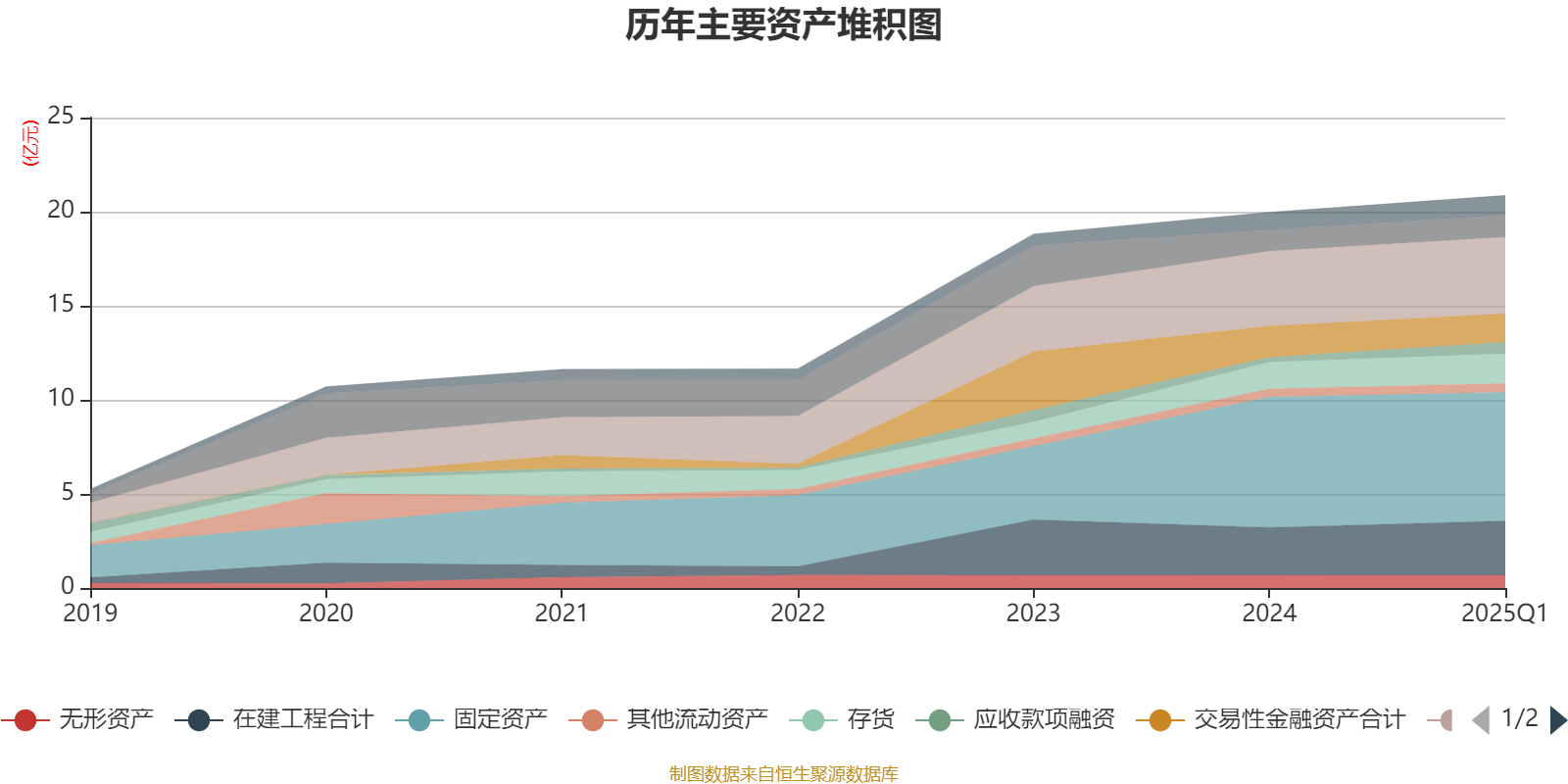 资产重大变化方面,截至2025年一季度末,公司固定资产较上年末减少1.57%,占公司总资产比重下降2.01个百分点;应收款项融资较上年末增加136.05%,占公司总资产比重上升1.66个百分点;在建工程合计较上年末增加14.03%,占公司总资产比重上升1.16个百分点;交易性金融资产合计较上年末减少9.08%,占公司总资产比重下降1.08个百分点。