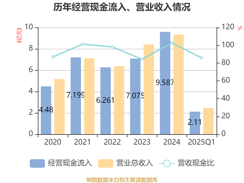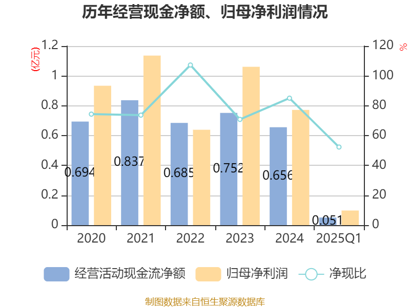 截至2025年一季度末,公司经营活动现金流净额为510.65万元,同比下降82.27%;筹资活动现金流净额4113.51万元,同比增加1743.98万元;投资活动现金流净额-4295.36万元,上年同期为-7782.93万元。