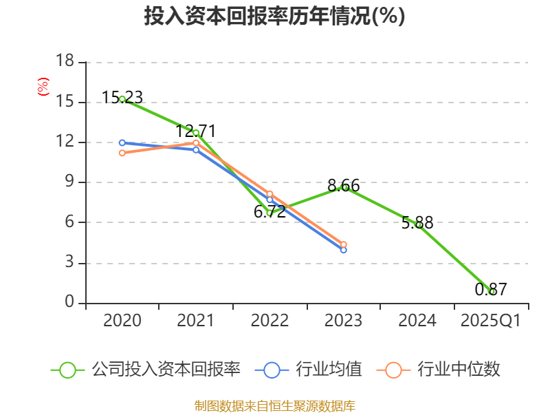 盈利能力方面, 2025年一季度公司加权平均净资产收益率为0.85%,同比下降1.61个百分点。公司2025年第一季度投入资本回报率为0.87%,较上年同期下降1.16个百分点。