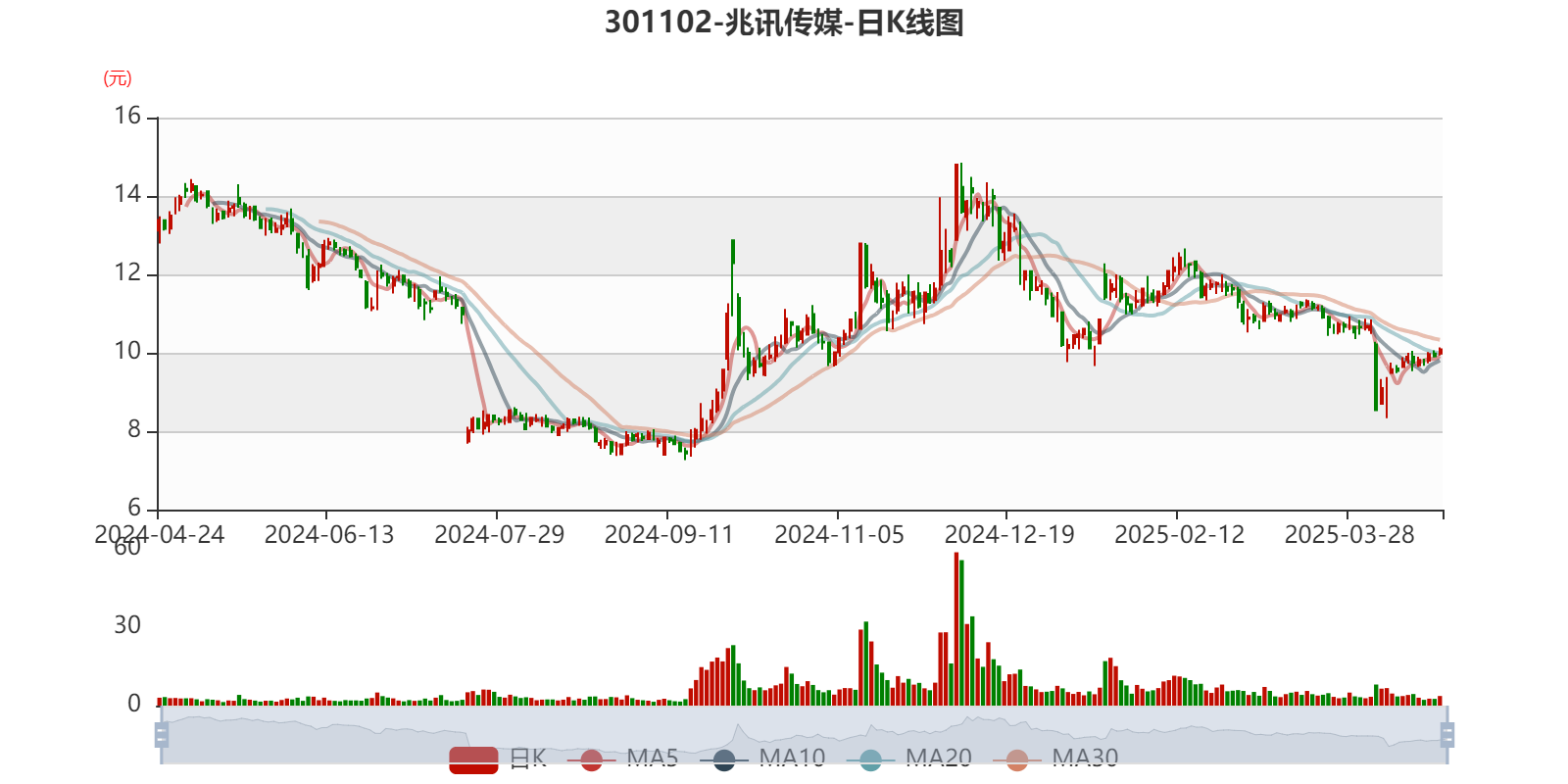 中证智能财讯兆讯传媒(301102)4月24日披露2025年第一季度报告。公司实现营业总收入1.64亿元,同比下降7.60%;归母净利润2086.76万元,同比下降45.72%;扣非净利润2077.72万元,同比下降35.21%;经营活动产生的现金流量净额为8875.37万元,同比下降25.54%;报告期内,兆讯传媒基本每股收益为0.0514元,加权平均净资产收益率为0.68%。