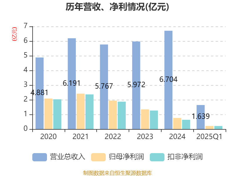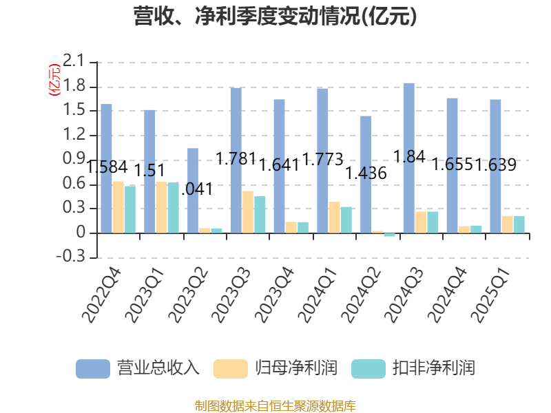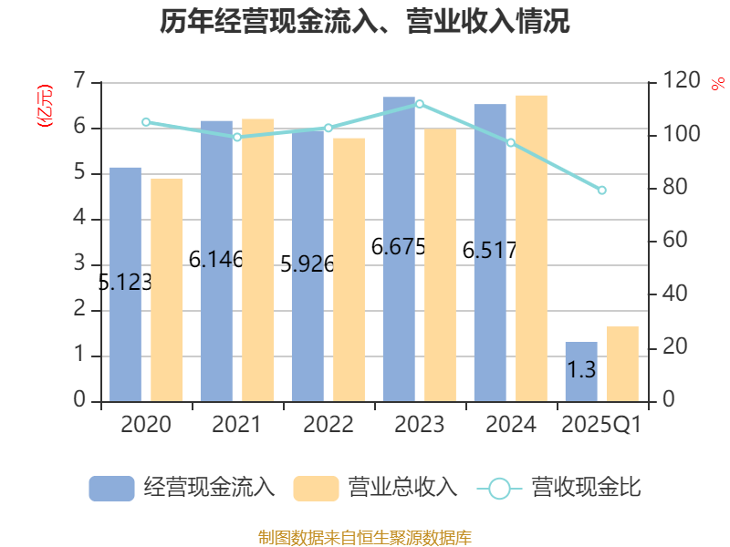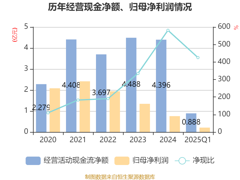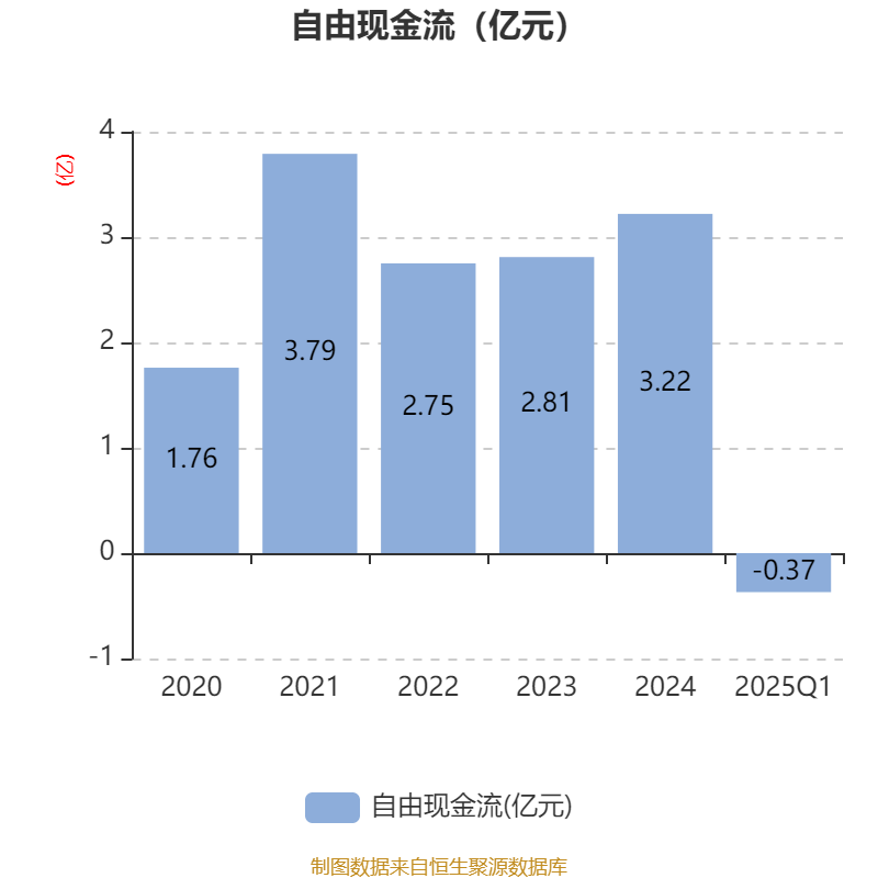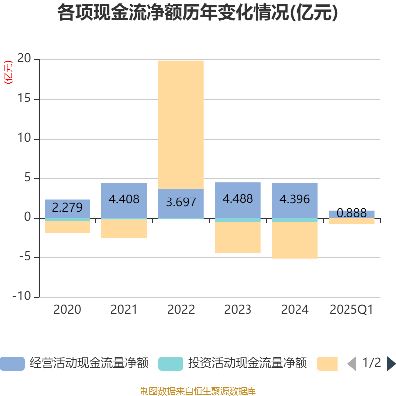 截至2025年一季度末,公司经营活动现金流净额为8875.37万元,同比下降25.54%;筹资活动现金流净额-7488.76万元,同比增加2518.89万元;投资活动现金流净额-470.63万元,上年同期为-1213.8万元。