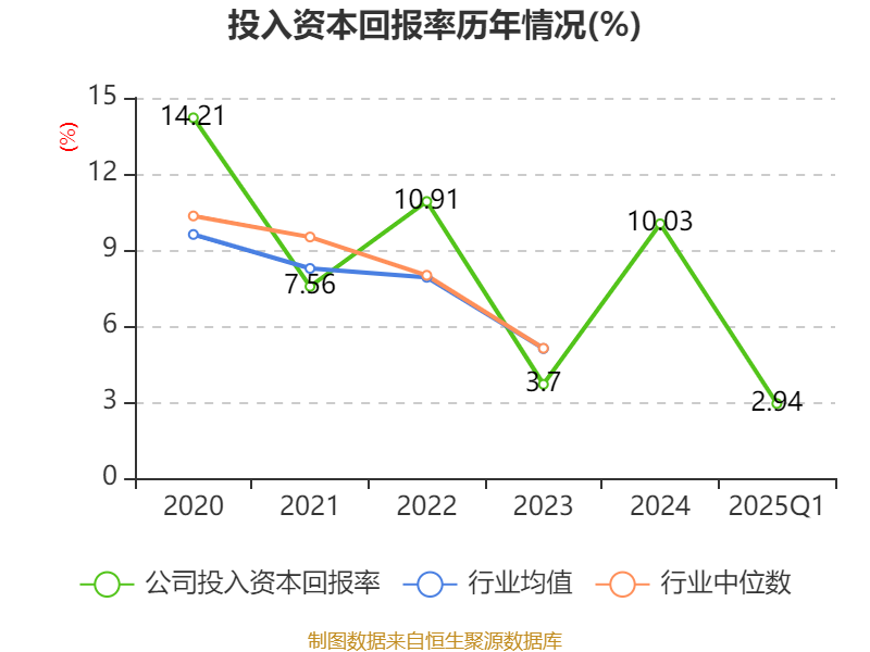 盈利能力方面, 2025年一季度公司加权平均净资产收益率为2.99%,同比上升1.42个百分点。公司2025年第一季度投入资本回报率为2.94%,较上年同期上升1.43个百分点。