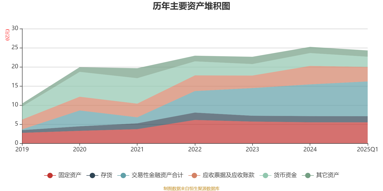 资产重大变化方面,截至2025年一季度末,公司交易性金融资产合计较上年末增加9.54%,占公司总资产比重上升4.54个百分点;应收票据及应收账款较上年末减少21.18%,占公司总资产比重下降3.47个百分点;货币资金较上年末减少20.7%,占公司总资产比重下降2.37个百分点;固定资产较上年末减少0.31%,占公司总资产比重上升0.77个百分点。