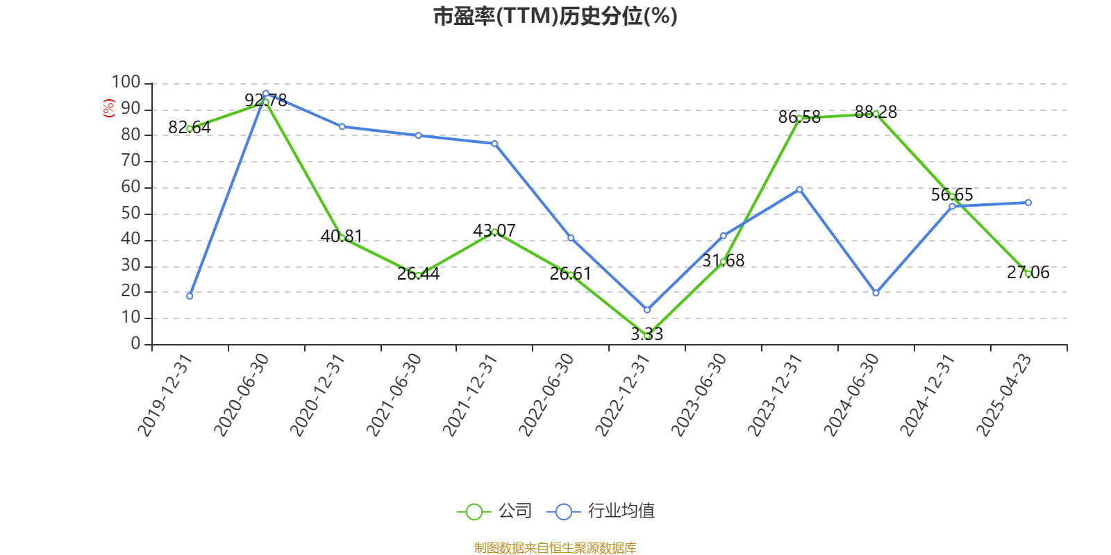 市盈率、市净率为负时,不显示当期分位数,会导致折线图中断。