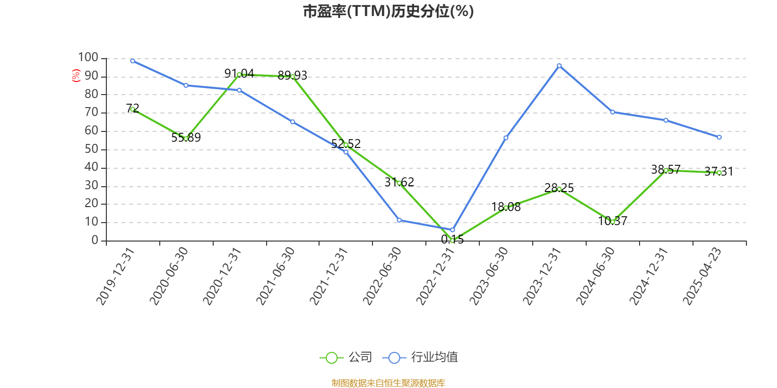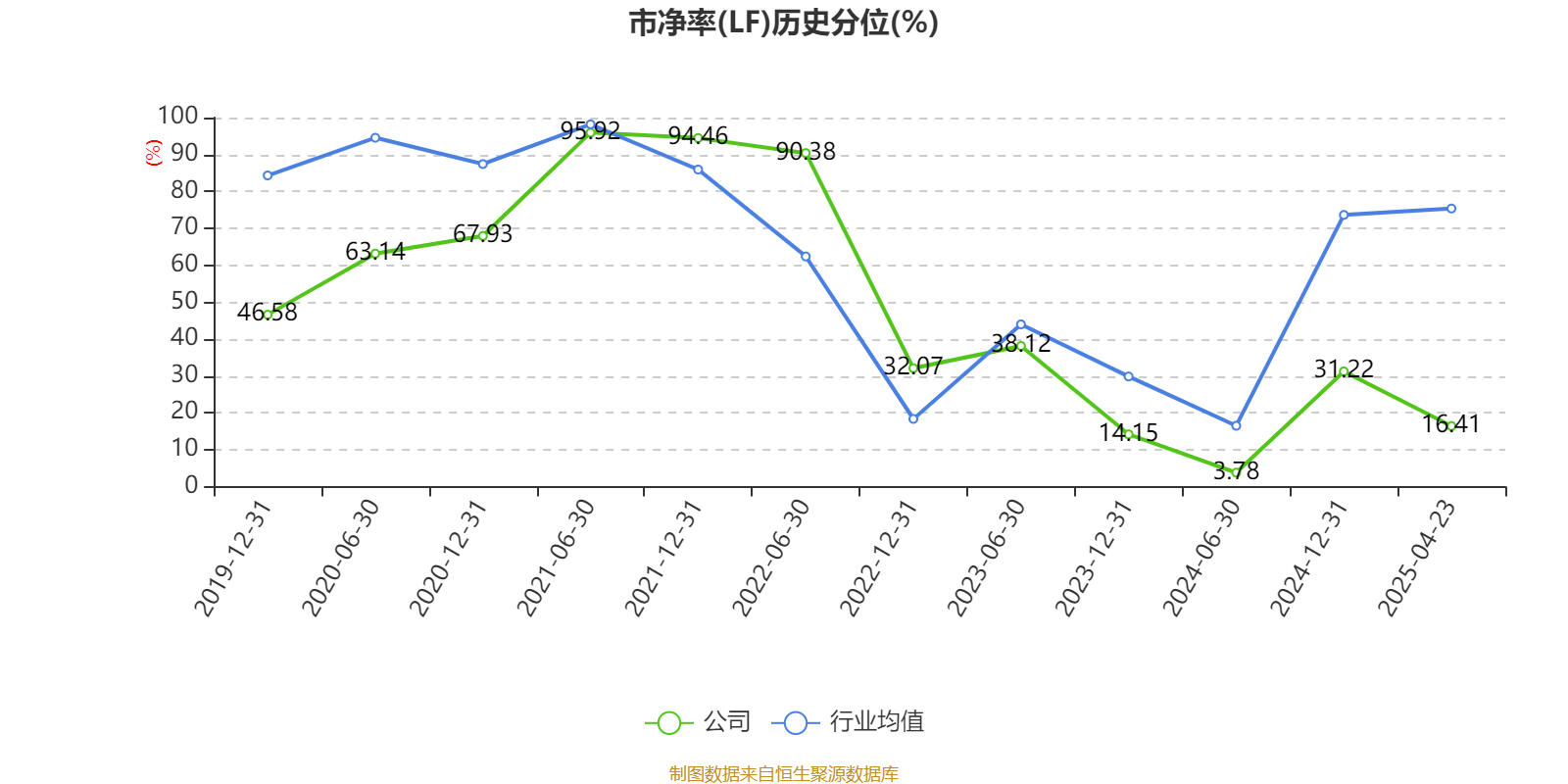 市盈率、市净率为负时,不显示当期分位数,会导致折线图中断。