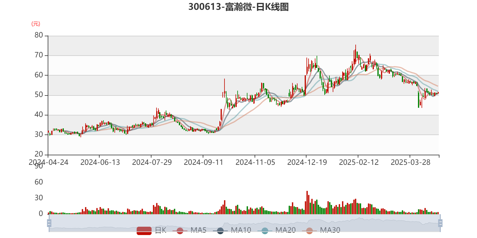 以4月23日收盘价计算,富瀚微目前市盈率(TTM)约为50.47倍,市净率(LF)约4.27倍,市销率(TTM)约6.81倍。