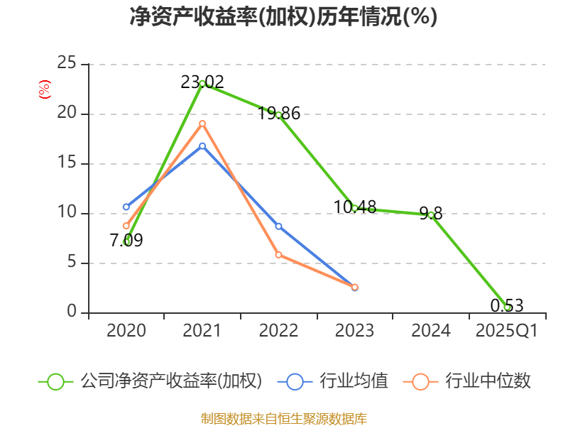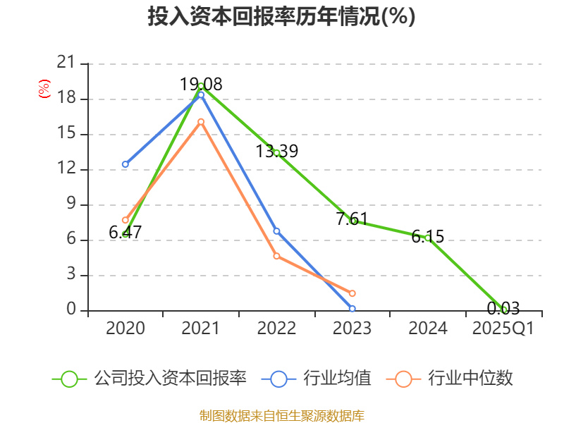 盈利能力方面, 2025年一季度公司加权平均净资产收益率为0.53%,同比下降0.88个百分点。公司2025年第一季度投入资本回报率为0.03%,较上年同期下降0.61个百分点。