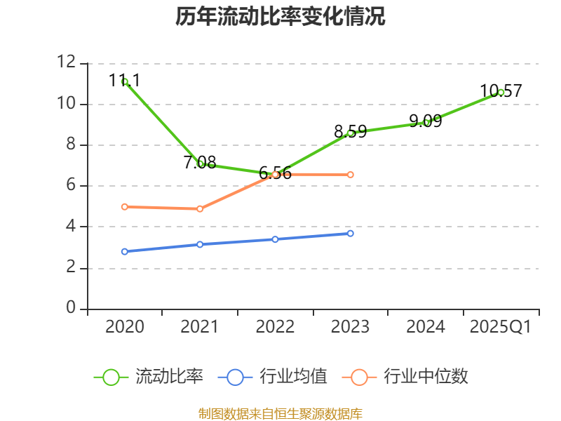 2025年第一季度,公司流动比率为10.57,速动比率为8.8。