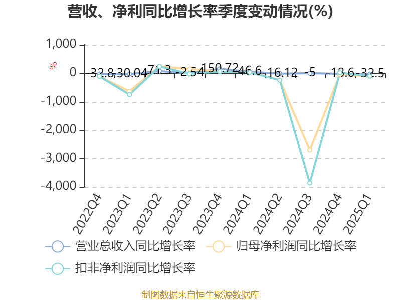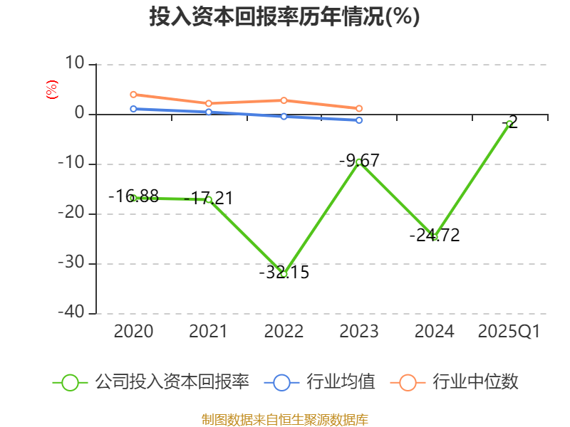 盈利能力方面, 2025年一季度公司加权平均净资产收益率为-4.2%,同比下降2.96个百分点。公司2025年第一季度投入资本回报率为-2%,较上年同期下降1.6个百分点。