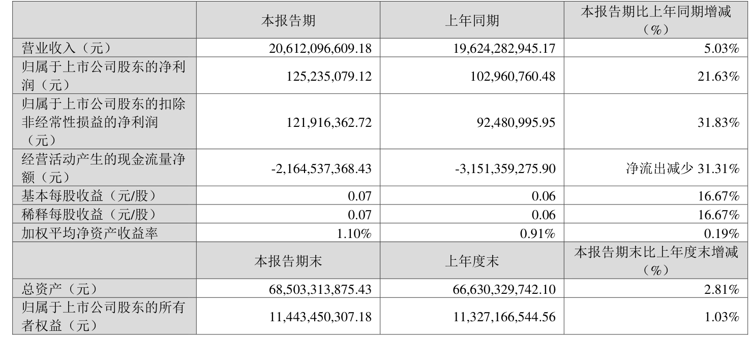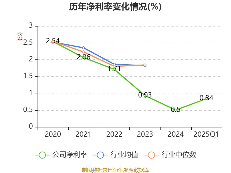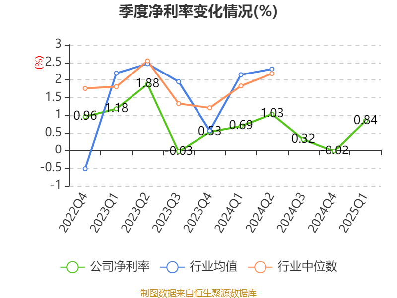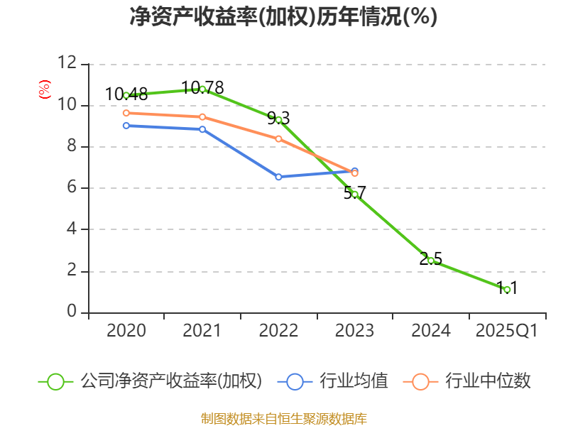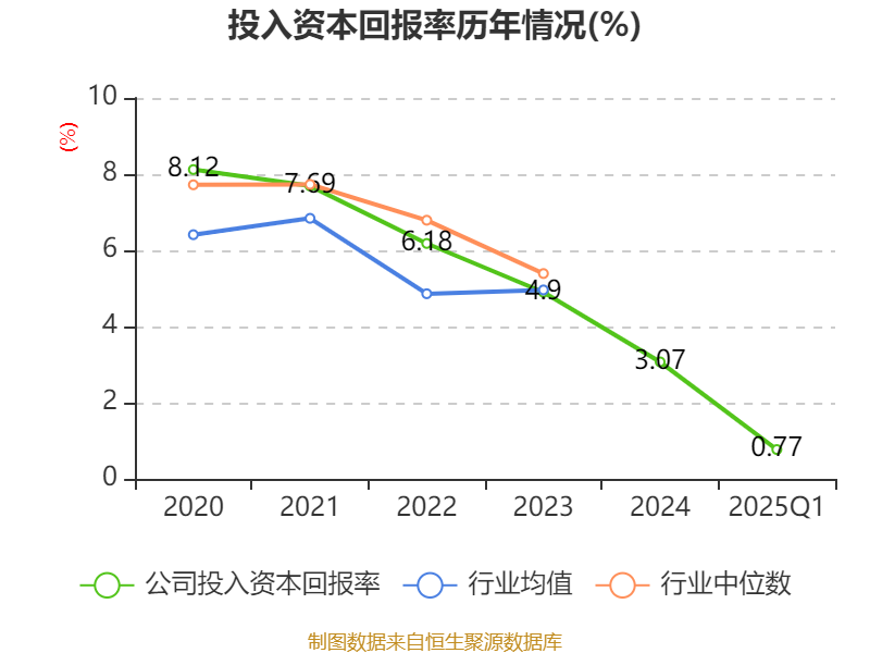 盈利能力方面, 2025年一季度公司加权平均净资产收益率为1.1%,同比上升0.19个百分点。公司2025年第一季度投入资本回报率为0.77%,较上年同期下降0.13个百分点。