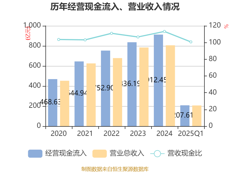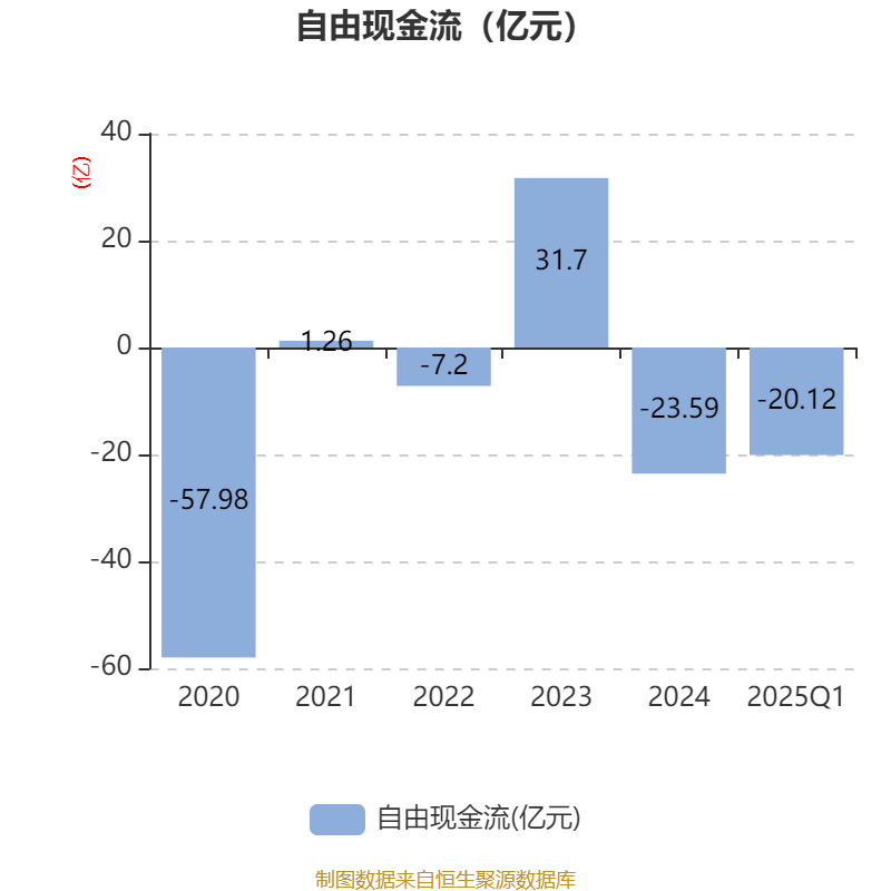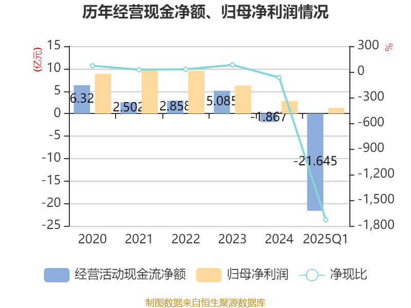 截至2025年一季度末,公司经营活动现金流净额为-21.65亿元,同比增加9.87亿元;筹资活动现金流净额-1.57亿元,同比增加2.59亿元;投资活动现金流净额-1.06亿元,上年同期为-4563.13万元。