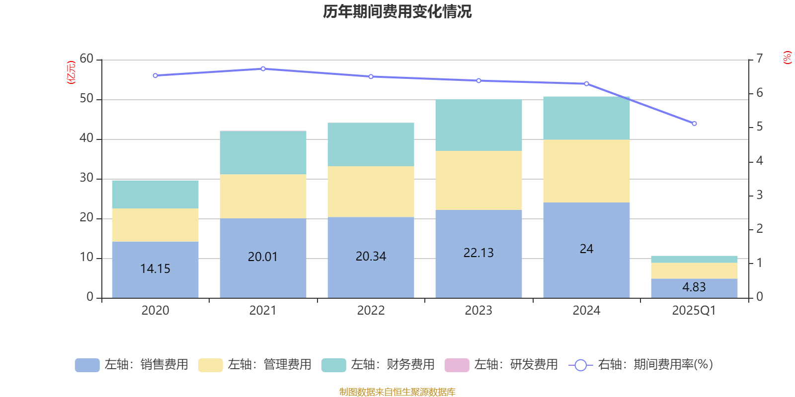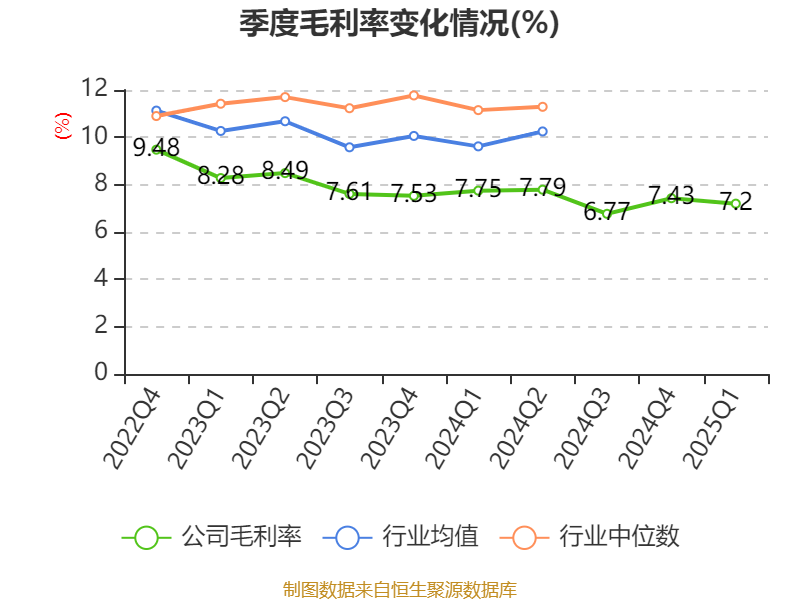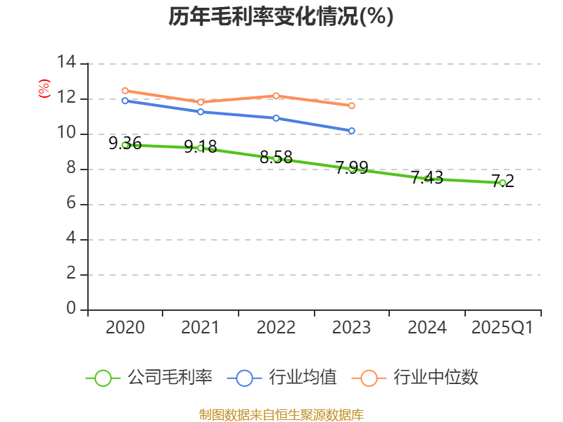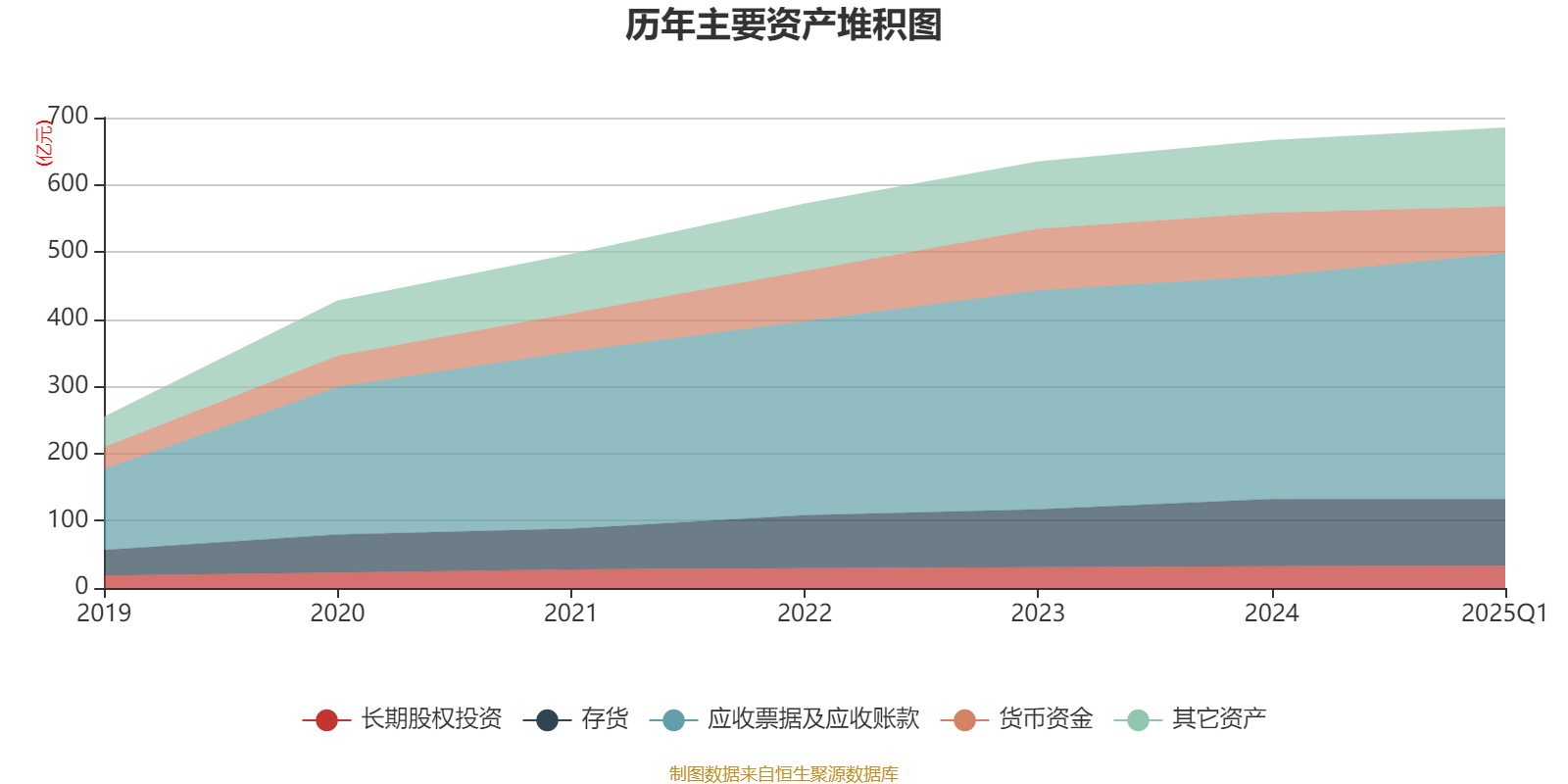 资产重大变化方面,截至2025年一季度末,公司货币资金较上年末减少25.74%,占公司总资产比重下降3.91个百分点;应收票据及应收账款较上年末增加10.07%,占公司总资产比重上升3.52个百分点;预付款项较上年末增加63.35%,占公司总资产比重上升1.5个百分点;存货较上年末减少0.78%,占公司总资产比重下降0.52个百分点。