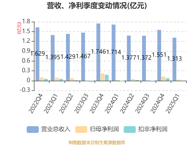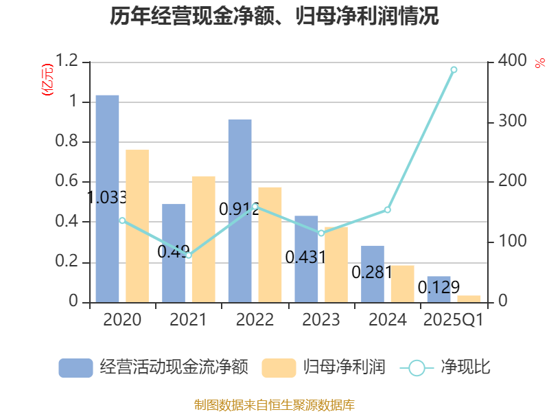 截至2025年一季度末,公司经营活动现金流净额为1287.76万元,同比增加2354.91万元;筹资活动现金流净额-331.16万元,同比减少503.29万元;投资活动现金流净额-4355.39万元,上年同期为2455.2万元。
