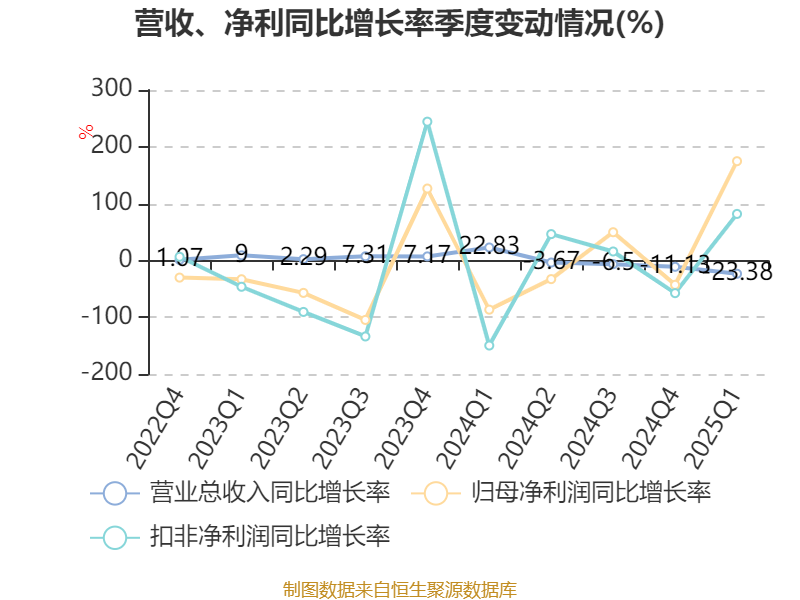 资产重大变化方面,截至2025年一季度末,公司货币资金较上年末减少32.98%,占公司总资产比重下降4.44个百分点;交易性金融资产合计较上年末增加7.65%,占公司总资产比重上升3.59个百分点;应收票据及应收账款较上年末增加6.35%,占公司总资产比重上升0.78个百分点;存货较上年末增加47.48%,占公司总资产比重上升0.48个百分点。