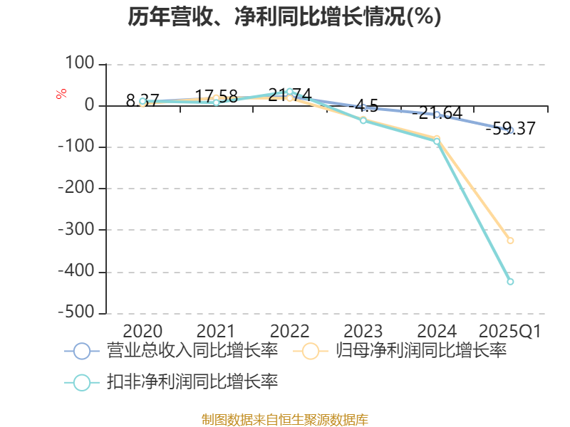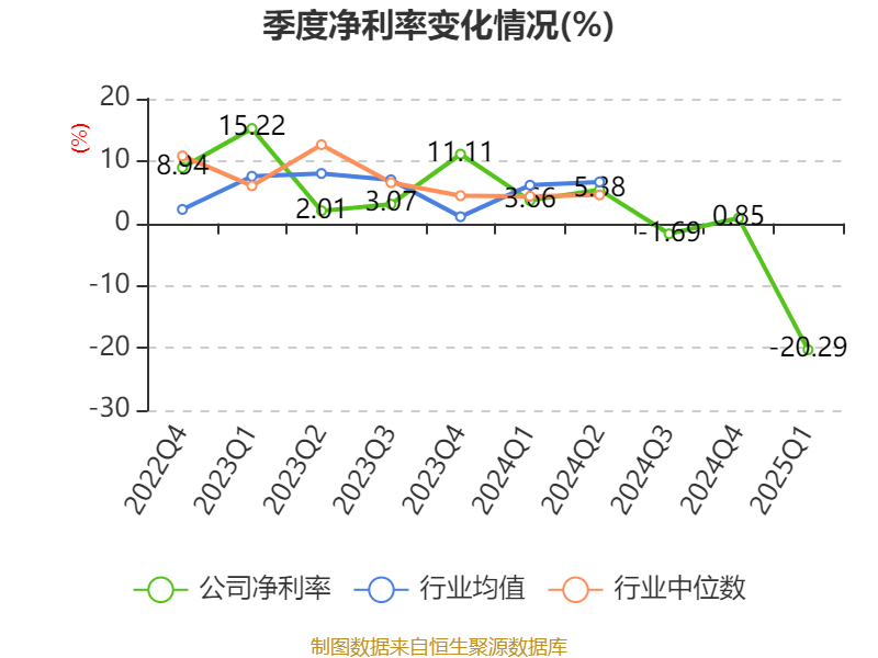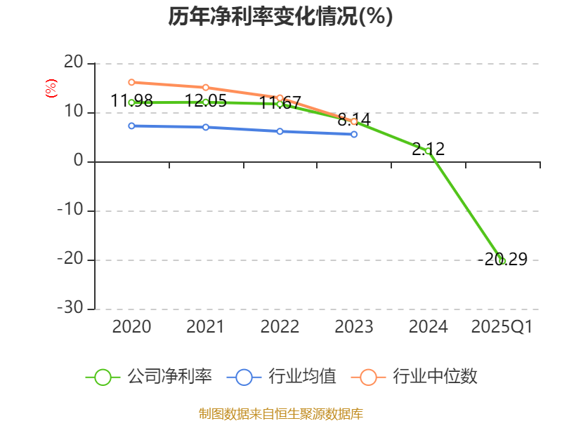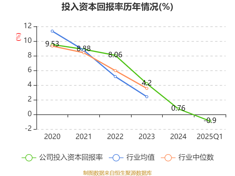 盈利能力方面, 2025年一季度公司加权平均净资产收益率为-1.08%,同比下降1.56个百分点。公司2025年第一季度投入资本回报率为-0.9%,较上年同期下降1.18个百分点。