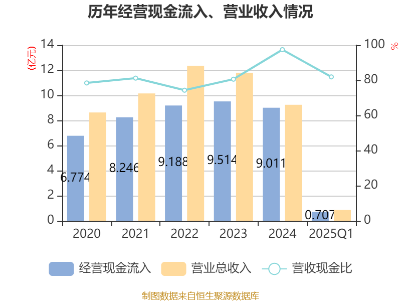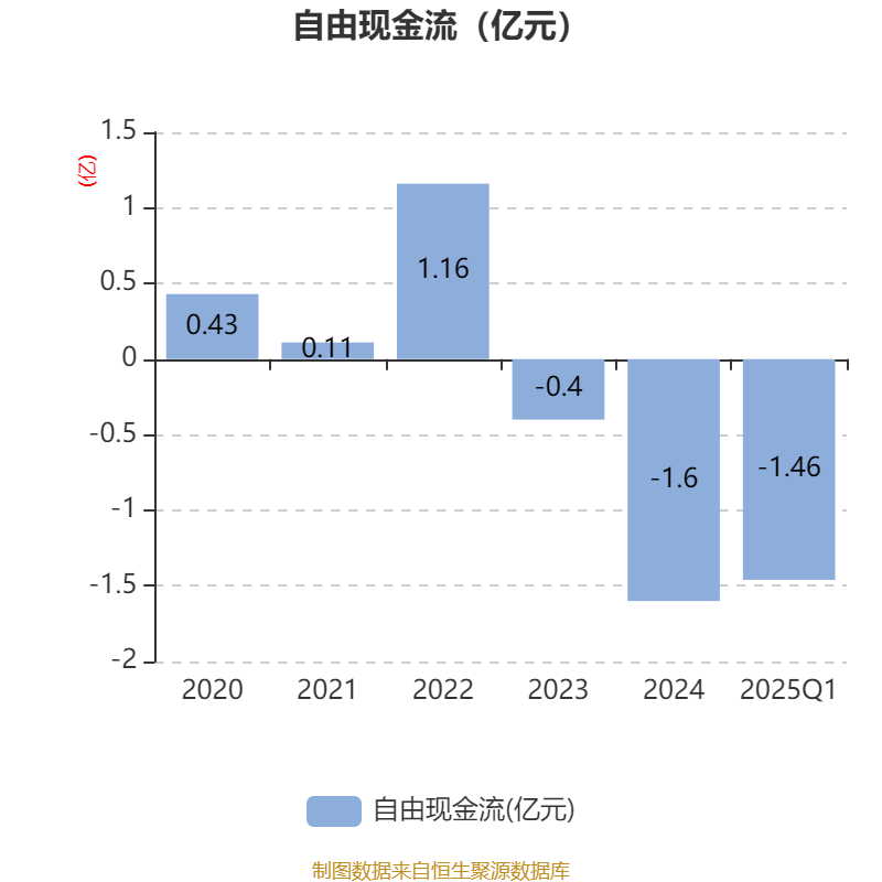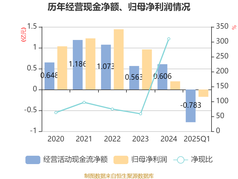 截至2025年一季度末,公司经营活动现金流净额为-7827.04万元,同比减少1875.9万元;筹资活动现金流净额325.04万元,同比减少2402.55万元;投资活动现金流净额-2939.87万元,上年同期为-1800.96万元。